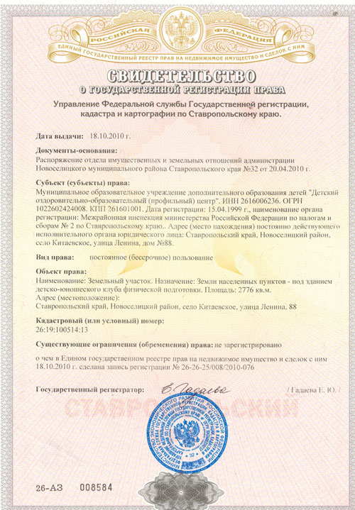 Свидетельство о государственной регистрации права